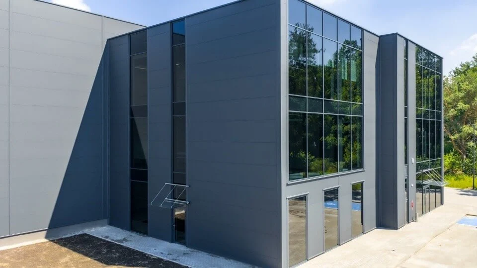 Fasáda budovy byla obložena sendvičovými panely ARPANEL v barvě RAL 7016 MAT, která budově dodává moderní a působivý vzhled a dokonale koresponduje s aktuálními architektonickými trendy.